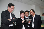 胡晓义参观历影数字科技公司时钟朝霞经理用IPAD向胡晓义介绍“山西解州关帝庙项目”。胡晓义说,这个项目具有广泛的应用前景且把传统文化与高科技有效地结合!